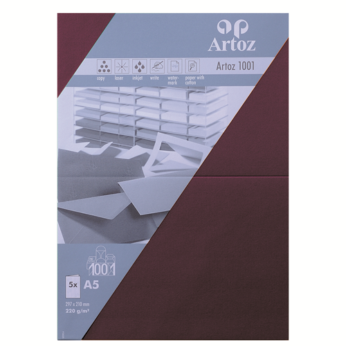 Entdecke die faszinierende Welt des 1001 Papiers von Artoz mit einer großen Farb- und Formatauswahl. Die einzigartige Haptik dank Rippung verleiht deinen Projekten eine besondere Note. Ob für stilvolle Einladungen, private Korrespondenz oder kreative saisonale Karten – das 1001 Papier erfüllt all deine gestalterischen Wünsche und lässt sie in zeitloser Schönheit erstrahlen. - Karton 220g/m² - Format: A5, Karte hochdoppelt, mit Falzrille - Set mit 5 Stück im Cellophan Beutel - 297 × 210mm - FSC®- Zertifiziert