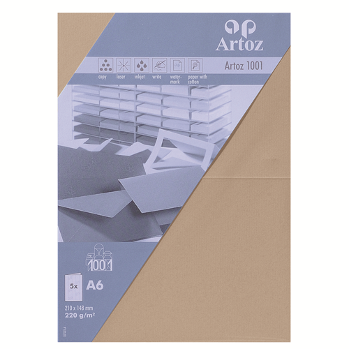 Entdecke die faszinierende Welt des 1001 Papiers von Artoz mit einer großen Farb- und Formatauswahl. Die einzigartige Haptik dank Rippung verleiht deinen Projekten eine besondere Note. Ob für stilvolle Einladungen, private Korrespondenz oder kreative saisonale Karten – das 1001 Papier erfüllt all deine gestalterischen Wünsche und lässt sie in zeitloser Schönheit erstrahlen. - Karton 220g/m² - Format: A6, Karte hochdoppelt, mit Falzrille - Set mit 5 Stück im Cellophan Beutel - 210 × 148mm - FSC®- Zertifiziert