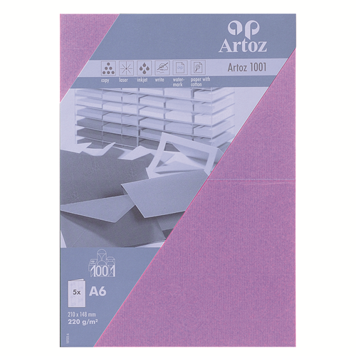 Entdecke die faszinierende Welt des 1001 Papiers von Artoz mit einer großen Farb- und Formatauswahl. Die einzigartige Haptik dank Rippung verleiht deinen Projekten eine besondere Note. Ob für stilvolle Einladungen, private Korrespondenz oder kreative saisonale Karten – das 1001 Papier erfüllt all deine gestalterischen Wünsche und lässt sie in zeitloser Schönheit erstrahlen. - Karton 220g/m² - Format: A6, Karte hochdoppelt, mit Falzrille - Set mit 5 Stück im Cellophan Beutel - 210 × 148mm - FSC®- Zertifiziert