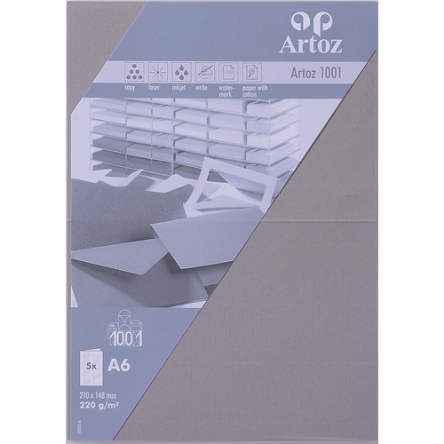 Entdecke die faszinierende Welt des 1001 Papiers von Artoz mit einer großen Farb- und Formatauswahl. Die einzigartige Haptik dank Rippung verleiht deinen Projekten eine besondere Note. Ob für stilvolle Einladungen, private Korrespondenz oder kreative saisonale Karten – das 1001 Papier erfüllt all deine gestalterischen Wünsche und lässt sie in zeitloser Schönheit erstrahlen. - Karton 220g/m² - Format: A6, Karte hochdoppelt, mit Falzrille - Set mit 5 Stück im Cellophan Beutel - 210 × 148mm - FSC®- Zertifiziert