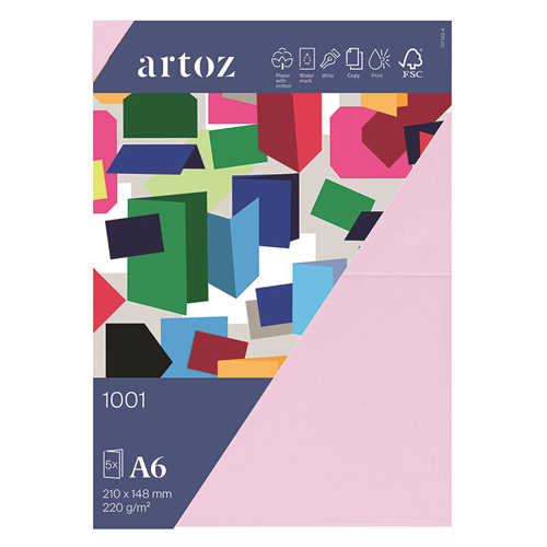 Entdecke die faszinierende Welt des 1001 Papiers von Artoz mit einer großen Farb- und Formatauswahl. Die einzigartige Haptik dank Rippung verleiht deinen Projekten eine besondere Note. Ob für stilvolle Einladungen, private Korrespondenz oder kreative saisonale Karten – das 1001 Papier erfüllt all deine gestalterischen Wünsche und lässt sie in zeitloser Schönheit erstrahlen. - Karton 220g/m² - Format: A6, Karte hochdoppelt, mit Falzrille - Set mit 5 Stück im Cellophan Beutel - 210 × 148mm - FSC®- Zertifiziert