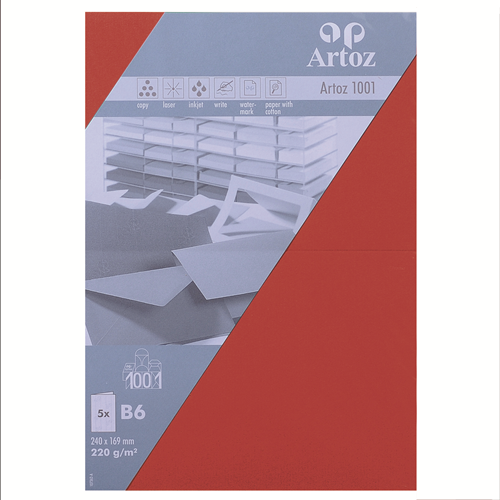 Entdecke die faszinierende Welt des 1001 Papiers von Artoz mit einer großen Farb- und Formatauswahl. Die einzigartige Haptik dank Rippung verleiht deinen Projekten eine besondere Note. Ob für stilvolle Einladungen, private Korrespondenz oder kreative saisonale Karten – das 1001 Papier erfüllt all deine gestalterischen Wünsche und lässt sie in zeitloser Schönheit erstrahlen. - Karton 220g/m² - Format: B6, Karte hochdoppelt, mit Falzrille - Set mit 5 Stück im Cellophan Beutel - 240 × 169mm - FSC®- Zertifiziert