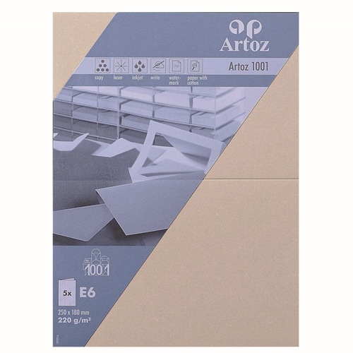 Entdecke die faszinierende Welt des 1001 Papiers von Artoz mit einer großen Farb- und Formatauswahl. Die einzigartige Haptik dank Rippung verleiht deinen Projekten eine besondere Note. Ob für stilvolle Einladungen, private Korrespondenz oder kreative saisonale Karten – das 1001 Papier erfüllt all deine gestalterischen Wünsche und lässt sie in zeitloser Schönheit erstrahlen. - Karton 220g/m² - Format: E6, Karte hochdoppelt, mit Falzrille - Set mit 5 Stück im Cellophan Beutel - 250 × 180mm - FSC®- Zertifiziert