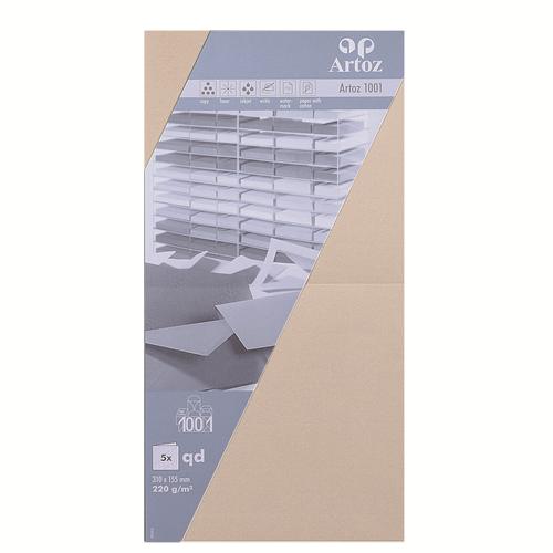 Entdecke die faszinierende Welt des 1001 Papiers von Artoz mit einer großen Farb- und Formatauswahl. Die einzigartige Haptik dank Rippung verleiht deinen Projekten eine besondere Note. Ob für stilvolle Einladungen, private Korrespondenz oder kreative saisonale Karten – das 1001 Papier erfüllt all deine gestalterischen Wünsche und lässt sie in zeitloser Schönheit erstrahlen. - Karton 220g/m² - Format: quadratisch, Karte mit Falzrille - Set mit 5 Stück im Cellophan Beutel - 310 × 155mm - FSC®- Zertifiziert