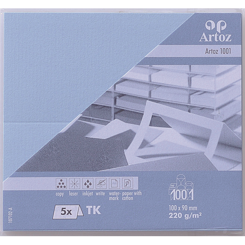 Entdecke die faszinierende Welt des 1001 Papiers von Artoz mit einer großen Farb- und Formatauswahl. Die einzigartige Haptik dank Rippung verleiht deinen Projekten eine besondere Note. Ob für stilvolle Einladungen, private Korrespondenz oder kreative saisonale Karten – das 1001 Papier erfüllt all deine gestalterischen Wünsche und lässt sie in zeitloser Schönheit erstrahlen. - Karton 220g/m² - Format: Tischkarte, mit Falzrille - Set mit 5 Stück im Cellophan Beutel - 100 × 90mm - FSC®- Zertifiziert