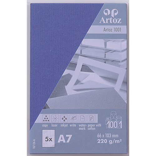 Entdecke die faszinierende Welt des 1001 Papiers von Artoz mit einer großen Farb- und Formatauswahl. Die einzigartige Haptik dank Rippung verleiht deinen Projekten eine besondere Note. Ob für stilvolle Einladungen, private Korrespondenz oder kreative saisonale Karten – das 1001 Papier erfüllt all deine gestalterischen Wünsche und lässt sie in zeitloser Schönheit erstrahlen. - Karton 220g/m² - Format: A7 - Set mit 5 Stück im Cellophan Beutel - 103 × 66mm - FSC®- Zertifiziert