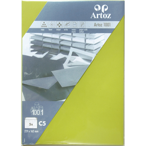 Entdecke die faszinierende Welt des 1001 Papiers von Artoz mit einer großen Farb- und Formatauswahl. Die einzigartige Haptik dank Rippung verleiht deinen Projekten eine besondere Note. Ob für stilvolle Einladungen, private Korrespondenz oder kreative saisonale Karten – das 1001 Papier erfüllt all deine gestalterischen Wünsche und lässt sie in zeitloser Schönheit erstrahlen. - Papier 100g/m² - Format: C5, Umschlag, ungefüttert - Set mit 5 Stück im Cellophan Beutel - Gerade Klappe mit Haftklebestreifen - 229 × 162mm - FSC®- Zertifiziert