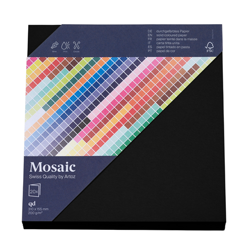 Erlebe die künstlerische Vielfalt des Mosaic Papiers von Artoz und lass deine Projekte in einem faszinierenden Mustermeer erstrahlen. Mit seiner großen Farb- und Formatauswahl ist es ideal für den Druck, perfekt zum Stanzen und Stempeln sowie für Origami und andere Falztechniken – für unendliche Gestaltungsmöglichkeiten und beeindruckende Kreationen.