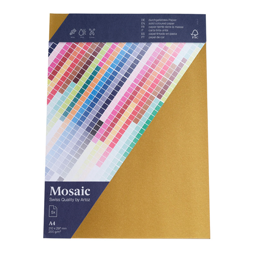 Erlebe die künstlerische Vielfalt des Mosaic Papiers von Artoz und lass deine Projekte in einem faszinierenden Mustermeer erstrahlen. Mit seiner großen Farb- und Formatauswahl ist es ideal für den Druck, perfekt zum Stanzen und Stempeln sowie für Origami und andere Falztechniken – für unendliche Gestaltungsmöglichkeiten und beeindruckende Kreationen.