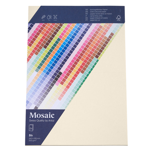 Erlebe die künstlerische Vielfalt des Mosaic Papiers von Artoz und lass deine Projekte in einem faszinierenden Mustermeer erstrahlen. Mit seiner großen Farb- und Formatauswahl ist es ideal für den Druck, perfekt zum Stanzen und Stempeln sowie für Origami und andere Falztechniken – für unendliche Gestaltungsmöglichkeiten und beeindruckende Kreationen.