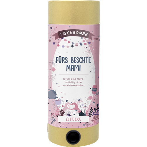 Die Tischbombe ist mit einem vorgefertigten Fürs beschte Mami-Design bedruckt.