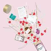 Der Inhalt besteht aus bunten Konfetti und einem fröhlichen Sammelsurium an Geburtstagsüberraschungen.