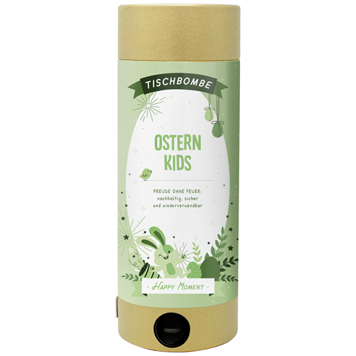 Die Tischbombe ist mit einem vorgefertigten Ostern Kids-Design bedruckt.