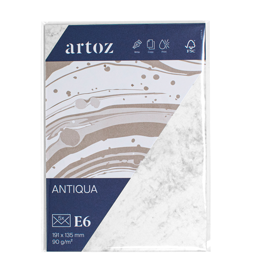 Entdecke die zeitlose Eleganz des Antiqua Papiers von Artoz und tauche ein in die Ära vergangener Schönheit. Kreiere unvergessliche Momente und erwecke deine Ideen zum Leben mit dem bezaubernden Antiqua Papier. Dank der beidseitig unterschiedlich marmorierten Oberflächen ist jedes Blatt ein Unikat, ideal für Urkunden, Einladungen, Zertifikate und Jubiläen – für besondere Anlässe mit einem Hauch von historischer Raffinesse.