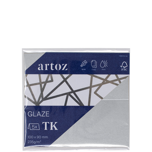 Erlebe die glänzende Welt des Glaze Papiers von Artoz und verleihe deinen Ideen einen strahlenden Auftritt. Die glatte Oberfläche und schimmernde Optik veredeln deine Projekte mit einem Hauch von Eleganz und Stil. Mit seinen sanft glitzernden Farben ist es ideal für Einladungen, Weihnachtskarten, Hochzeitskorrespondenz und Urkunden – für besondere Anlässe und unvergessliche Momente. - Karton 235g/m² - Format: Tischkarte, mit Falzrille - Set mit 5 Stück im Cellophan Beutel - 100 × 90mm - FSC®- Zertifiziert