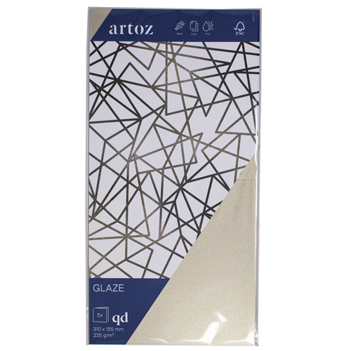 Erlebe die glänzende Welt des Glaze Papiers von Artoz und verleihe deinen Ideen einen strahlenden Auftritt. Die glatte Oberfläche und schimmernde Optik veredeln deine Projekte mit einem Hauch von Eleganz und Stil. Mit seinen sanft glitzernden Farben ist es ideal für Einladungen, Weihnachtskarten, Hochzeitskorrespondenz und Urkunden – für besondere Anlässe und unvergessliche Momente.