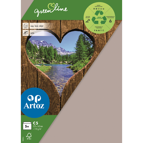 Entdecke die nachhaltige Eleganz des Greenline Papiers von Artoz und fühle die hochwertige, gepflegte Haptik. Perfekt kombinierbar mit glänzenden Papieren. Besonders schön sind die Weissdrucke auf dem Greenline Papier mit erstklassigen Ergebnissen. Ob für stilvolle Einladungen, professionelle Drucksachen wie Flyer, kreative Geschenkgutscheine, stimmungsvolle Weihnachtskarten, inspirierendes Lettering oder vielfältiges Stempeln und Stanzen – das Greenline Papier vereint umweltbewusste Gestaltung und exquisite Qualität in einem und lässt deine Ideen erstrahlen. - Papier 120g/m² - Format: C5, Umschlag, ungefüttert - Set mit 5 Stück im Cellophan Beutel - Gerade Klappe mit Haftklebestreifen - 229 × 162mm - FSC®- Zertifiziert - 100% Postconsumer Waste