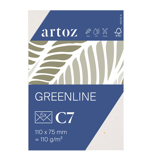 Entdecke die nachhaltige Eleganz des Greenline Papiers von Artoz und fühle die hochwertige, gepflegte Haptik. Perfekt kombinierbar mit glänzenden Papieren. Besonders schön sind die Weissdrucke auf dem Greenline Papier mit erstklassigen Ergebnissen. Ob für stilvolle Einladungen, professionelle Drucksachen wie Flyer, kreative Geschenkgutscheine, stimmungsvolle Weihnachtskarten, inspirierendes Lettering oder vielfältiges Stempeln und Stanzen – das Greenline Papier vereint umweltbewusste Gestaltung und exquisite Qualität in einem und lässt deine Ideen erstrahlen. - Papier 120g/m² - Format: C7, Umschlag, ungefüttert - Set mit 5 Stück im Cellophan Beutel - 110 × 75 mm - Spitzenklappe gummiert - FSC®- Zertifiziert - 100% Postconsumer Waste