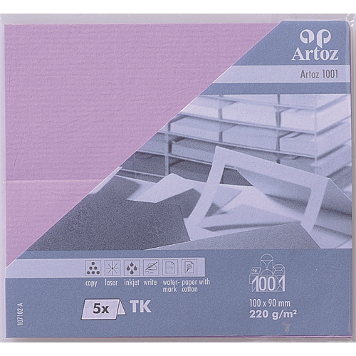 Découvrez le monde fascinant du papier Artoz 1001 disponible dans de très nombreux formats et coloris. Le toucher unique de ce papier nervuré apporte de l’originalité à vos projets. Invitations élégantes, correspondance privée ou cartes de vœux insolites: le charme atemporel du papier 1001 répond à toutes vos envies et fait resplendir vos créations. - Carton 220 g/m² - Format: Carton de table, avec rainure de pliage - Set de 5 pièces sous cellophane - 100 × 90 mm - Certifié FSC®