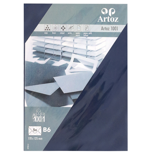 Découvrez le monde fascinant du papier Artoz 1001 disponible dans de très nombreux formats et coloris. Le toucher unique de ce papier nervuré apporte de l’originalité à vos projets. Invitations élégantes, correspondance privée ou cartes de vœux insolites: le charme atemporel du papier 1001 répond à toutes vos envies et fait resplendir vos créations. - Papier 100 g/m² - Format: B6, enveloppe, non doublée - Set de 5 pièces sous cellophane - Rabat pointu gommé - 178 × 125 mm - Certifié FSC®