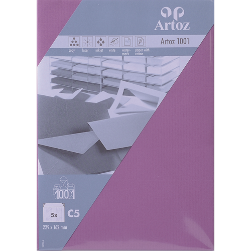 Découvrez le monde fascinant du papier Artoz 1001 disponible dans de très nombreux formats et coloris. Le toucher unique de ce papier nervuré apporte de l’originalité à vos projets. Invitations élégantes, correspondance privée ou cartes de vœux insolites: le charme atemporel du papier 1001 répond à toutes vos envies et fait resplendir vos créations. - Papier 100 g/m² - Format: C5, enveloppe, non doublée - Set de 5 pièces sous cellophane - Rabat droit avec bande adhésive - 229 × 162 mm - Certifié FSC®