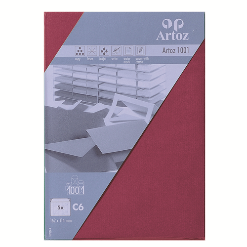 Découvrez le monde fascinant du papier Artoz 1001 disponible dans de très nombreux formats et coloris. Le toucher unique de ce papier nervuré apporte de l’originalité à vos projets. Invitations élégantes, correspondance privée ou cartes de vœux insolites: le charme atemporel du papier 1001 répond à toutes vos envies et fait resplendir vos créations. - Papier 100 g/m² - Format: C6, enveloppe, non doublée - Set de 5 pièces sous cellophane - Rabat droit avec bande adhésive - 162 × 114 mm - Certifié FSC®