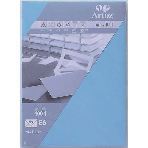 Découvrez le monde fascinant du papier Artoz 1001 disponible dans de très nombreux formats et coloris. Le toucher unique de ce papier nervuré apporte de l’originalité à vos projets. Invitations élégantes, correspondance privée ou cartes de vœux insolites: le charme atemporel du papier 1001 répond à toutes vos envies et fait resplendir vos créations. - Papier 100 g/m² - Format: E6, enveloppe, non doublée - Set de 5 pièces sous cellophane - Rabat pointu gommé - 191 × 135 mm - Certifié FSC®