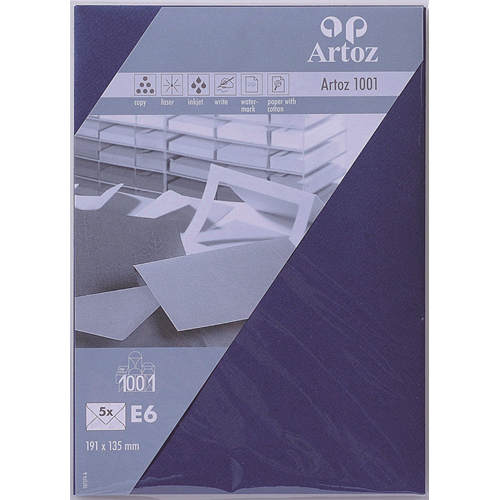 Découvrez le monde fascinant du papier Artoz 1001 disponible dans de très nombreux formats et coloris. Le toucher unique de ce papier nervuré apporte de l’originalité à vos projets. Invitations élégantes, correspondance privée ou cartes de vœux insolites: le charme atemporel du papier 1001 répond à toutes vos envies et fait resplendir vos créations. - Papier 100 g/m² - Format: E6, enveloppe, non doublée - Set de 5 pièces sous cellophane - Rabat pointu gommé - 191 × 135 mm - Certifié FSC®