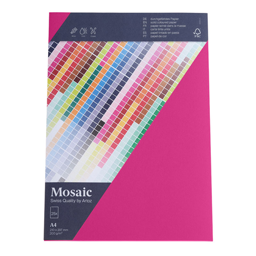 Découvrez la polyvalence infinie du papier Artoz Mosaic. Ses innombrables motifs feront resplendir vos projets! Disponible dans une vaste palette de teintes et de formats, il peut parfaitement être imprimé, tamponné, perforé ou plié, vous offrant ainsi une foule de possibilités créatives plus impressionnantes les unes que les autres. - Carton 200 g/m² - Format: A4 - 210 × 297 mm - Set de 25 pièces sous cellophane - Certifié FSC®