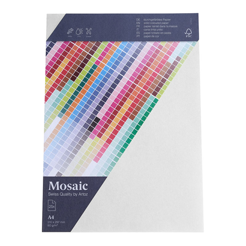 Découvrez la polyvalence infinie du papier Artoz Mosaic. Ses innombrables motifs feront resplendir vos projets! Disponible dans une vaste palette de teintes et de formats, il peut parfaitement être imprimé, tamponné, perforé ou plié, vous offrant ainsi une foule de possibilités créatives plus impressionnantes les unes que les autres.