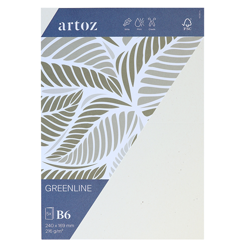 Découvrez l’élégance durable du papier Artoz Greenline et appréciez son toucher luxueux et délicat. Parfaitement compatible avec les papiers brillants. En outre, les impressions en blanc sur papier Greenline offrent des résultats exceptionnels. Que ce soit pour des invitations élégantes, des imprimés professionnels de type flyers, des cartes-cadeaux créatives, des cartes de Noël joyeuses, des calligraphies inspirantes ou toutes sortes de créations tamponnées et perforées, le papier Greenline allie une fabrication respectueuse de l’environnement à une qualité irréprochable pour concrétiser vos idées. - Carton 215 g/m² - Format: B6, carte double verticale, avec rainure de pliage - Set de 5 pièces sous cellophane - 240 × 169 mm - Certifié FSC® - 100% de matière recyclée