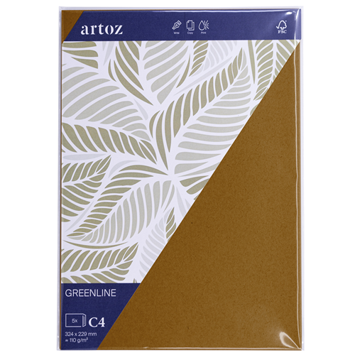 Découvrez l’élégance durable du papier Artoz Greenline et appréciez son toucher luxueux et délicat. Parfaitement compatible avec les papiers brillants. En outre, les impressions en blanc sur papier Greenline offrent des résultats exceptionnels. Que ce soit pour des invitations élégantes, des imprimés professionnels de type flyers, des cartes-cadeaux créatives, des cartes de Noël joyeuses, des calligraphies inspirantes ou toutes sortes de créations tamponnées et perforées, le papier Greenline allie une fabrication respectueuse de l’environnement à une qualité irréprochable pour concrétiser vos idées. - Papier 120 g/m² - Format: C4, enveloppe, non doublée - Set de 5 pièces sous cellophane - Rabat droit avec bande adhésive - 324 × 229 mm - Certifié FSC® - 100% de matière recyclée