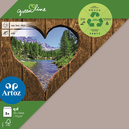 Découvrez l’élégance durable du papier Artoz Greenline et appréciez son toucher luxueux et délicat. Parfaitement compatible avec les papiers brillants. En outre, les impressions en blanc sur papier Greenline offrent des résultats exceptionnels. Que ce soit pour des invitations élégantes, des imprimés professionnels de type flyers, des cartes-cadeaux créatives, des cartes de Noël joyeuses, des calligraphies inspirantes ou toutes sortes de créations tamponnées et perforées, le papier Greenline allie une fabrication respectueuse de l’environnement à une qualité irréprochable pour concrétiser vos idées. - Papier 120 g/m² - Format: carré, enveloppe, non doublée - Rabat droit avec bande adhésive - 160 × 160 mm - Certifié FSC® - 100% de matière recyclée