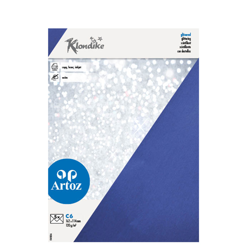 Plongez dans l’univers doré du papier Artoz Klondike et découvrez un véritable trésor pour vos créations. Son élégante finition métallisée apporte un soupçon de luxe et d’extravagance à vos projets. Transformez vos idées en œuvres-d’art scintillantes et laissez une impression durable avec notre splendide papier Klondike. - Carton 300 g/m² - Format: A6, carte double verticale, avec rainure de pliage - Set de 5 pièces sous cellophane - 210 × 148 mm - Certifié FSC®